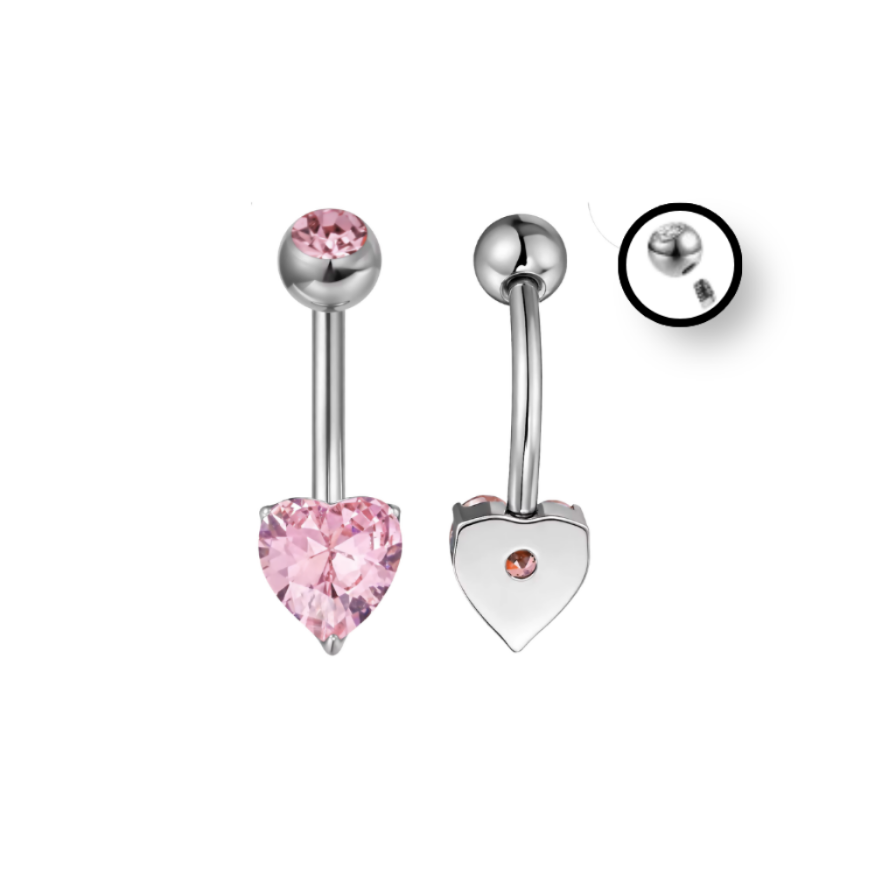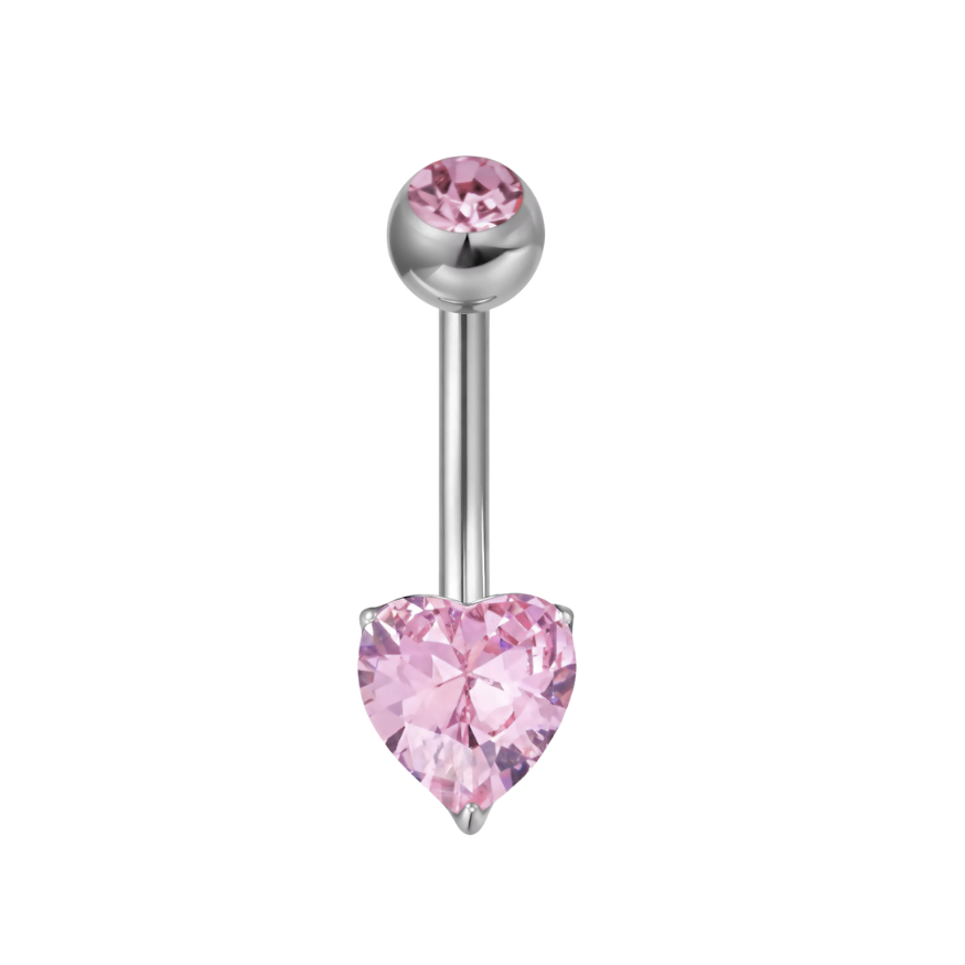 Σκουλαρίκι αφαλού καρδιά με ροζ πέτρες